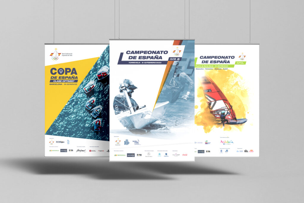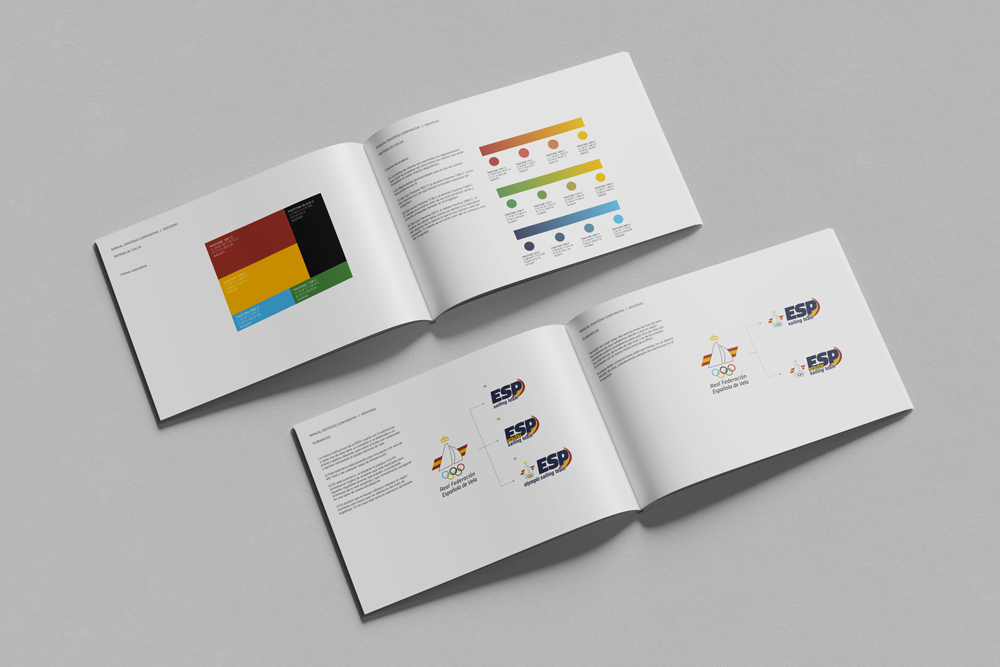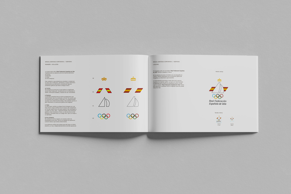 La nueva marca de la RFEV, mantiene tanto su esencia como los mismos elementos: corona, Bandera, velas y los aros olímpicos. Este rediseño lo que pretende es actualizar y modernizar la marca de la institución, aportando un mayor dinamismo, sintetizando sus elementos y solventando algunos problemas gráficos que tenía la antigua marca. Aprovechando este rediseño se presento varias líneas gráficas para los carteles de los campeonatos.